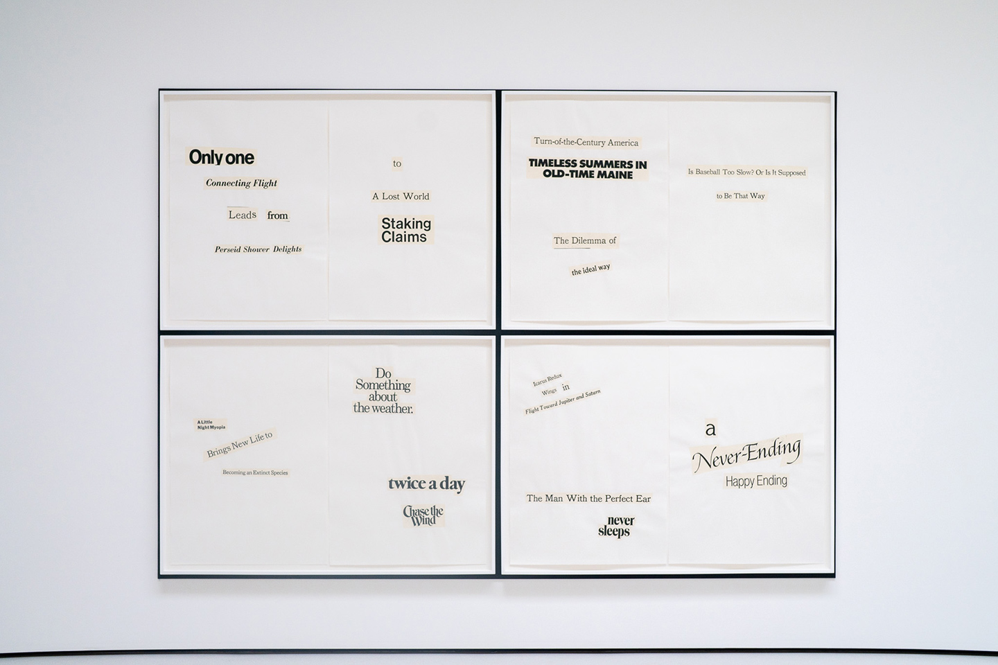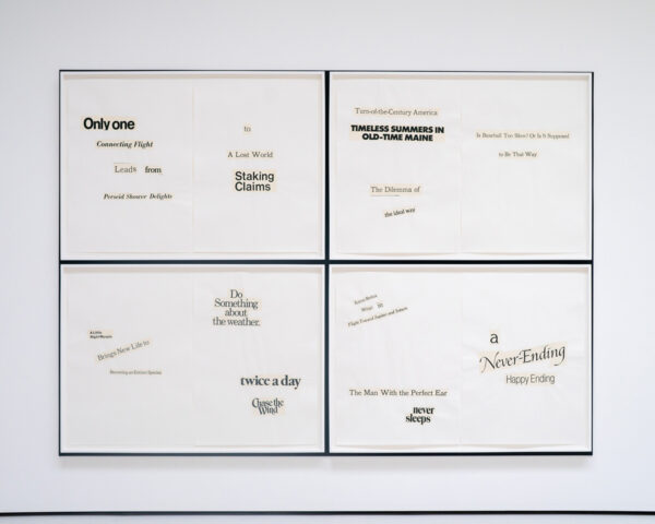 - Haiku Diptych 24. Studio sketch. Two panels selected from Cutting Out the New York Times (CONYT), 1977, as model for new diptych in Cutting Out CONYT, 1977/2017. Original newsprint cut-outs collaged on rag bond paper, each panel 8.5w x 11h (in). Sketch courtesy Lorraine O’Grady Studio.