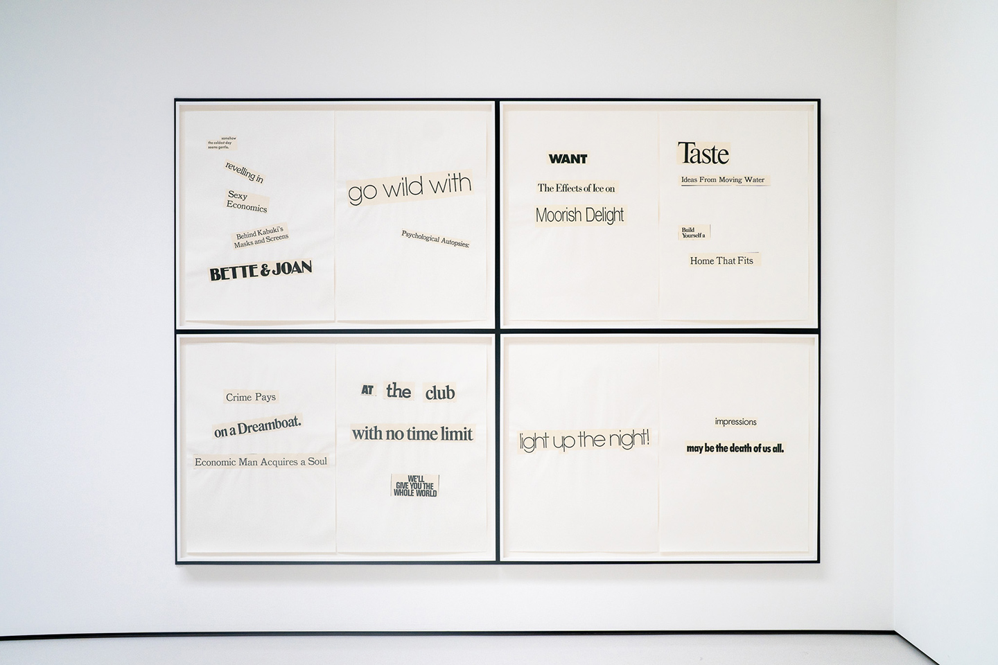 - SCAD Museum of Art, Savannah, Fall 2018 exhibitions – “Lorraine O’Grady: From Me to Them to Me Again.” View of Cutting Out CONYT, 1977/2017. Diptych prints, letterpress on Japanese paper, cut out and collaged on laid paper. Framed size: 63.25w x 45.25h x2d (in) each. Installation shot courtesy SCAD, Savannah.